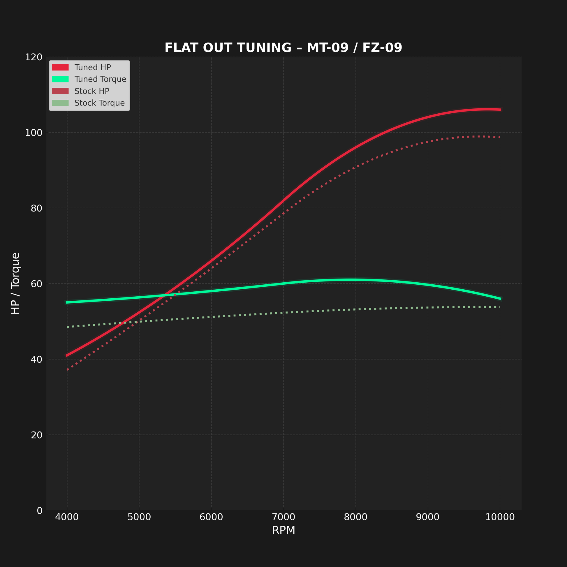 Performance Tune – Maximum throttle response and power delivery for riders who want every bit of performance squeezed out of their setup. Ideal for track days and twisty roads. Slightly less fuel economy.
